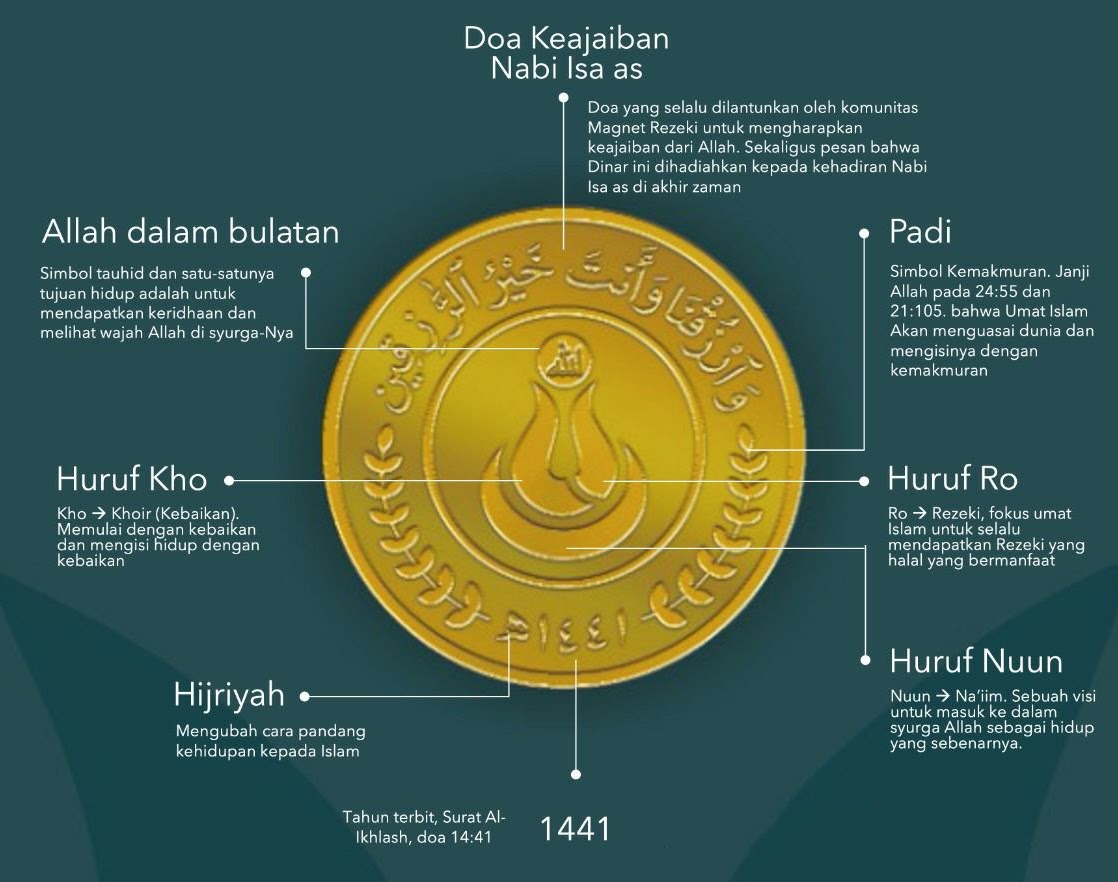 Desain koin emas terbaik dengan lafaz Allah dan doa QS Al Maidah 114. Setiap kepingan sarat makna dan keindahan Islami.